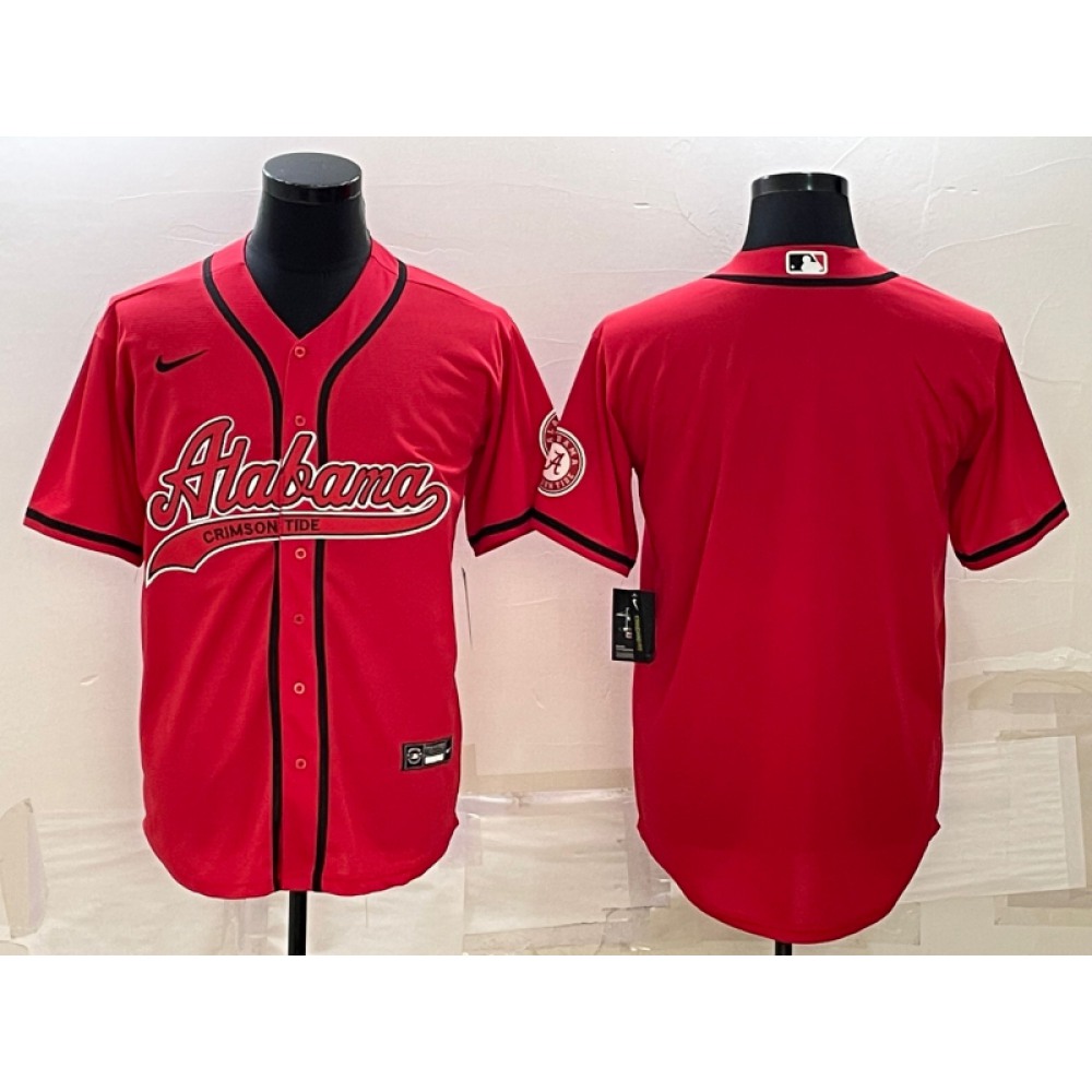 Men’s Alabama Crimson Tide Red Team Big Logo With Patch Cool Base Stitched Baseball Jersey